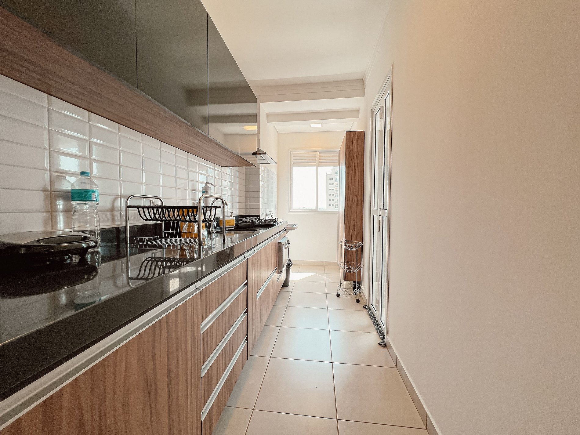A cozinha é um charme à parte: totalmente equipada com fogão cooktop, geladeira inox, micro-ondas, sanduicheira e cafeteira elétrica. Todos os utensílios são novos, pensados para sua comodidade. O banheiro, com ducha revigorante, é um convite ao relaxamento.