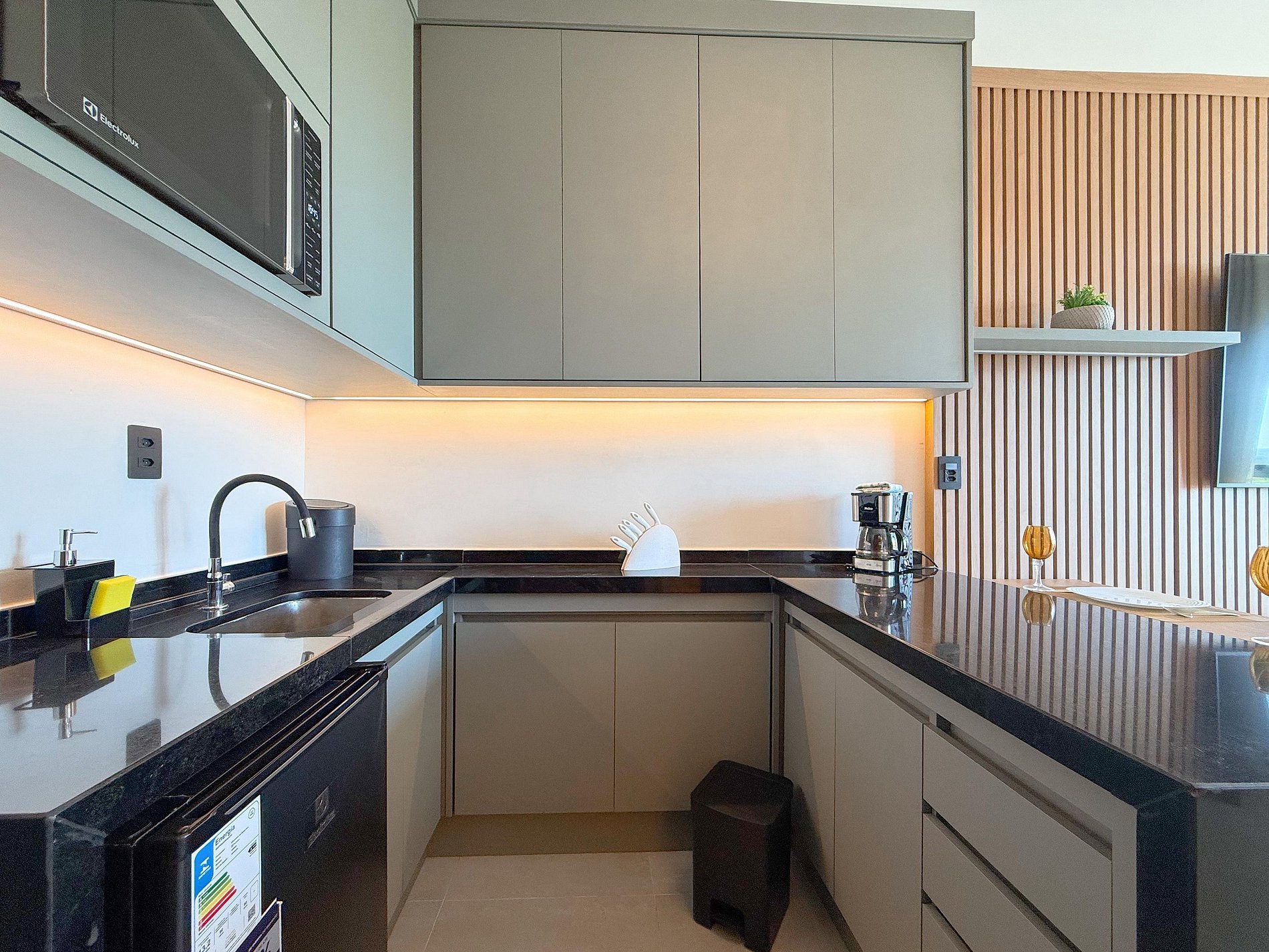 Estúdio de alto padrão no Hype 017, ao lado do Shopping Iguatemi, no 16º andar, com projeto elegante e atmosfera acolhedora. Marcenaria em madeira, iluminação cênica, cozinha integrada e ambientes bem definidos criam uma experiência sofisticada e confortável. Um espaço urbano, silencioso e cheio de identidade, ideal para quem valoriza estética, conforto e bem-estar em cada detalhe. Vem se sentir em casa!