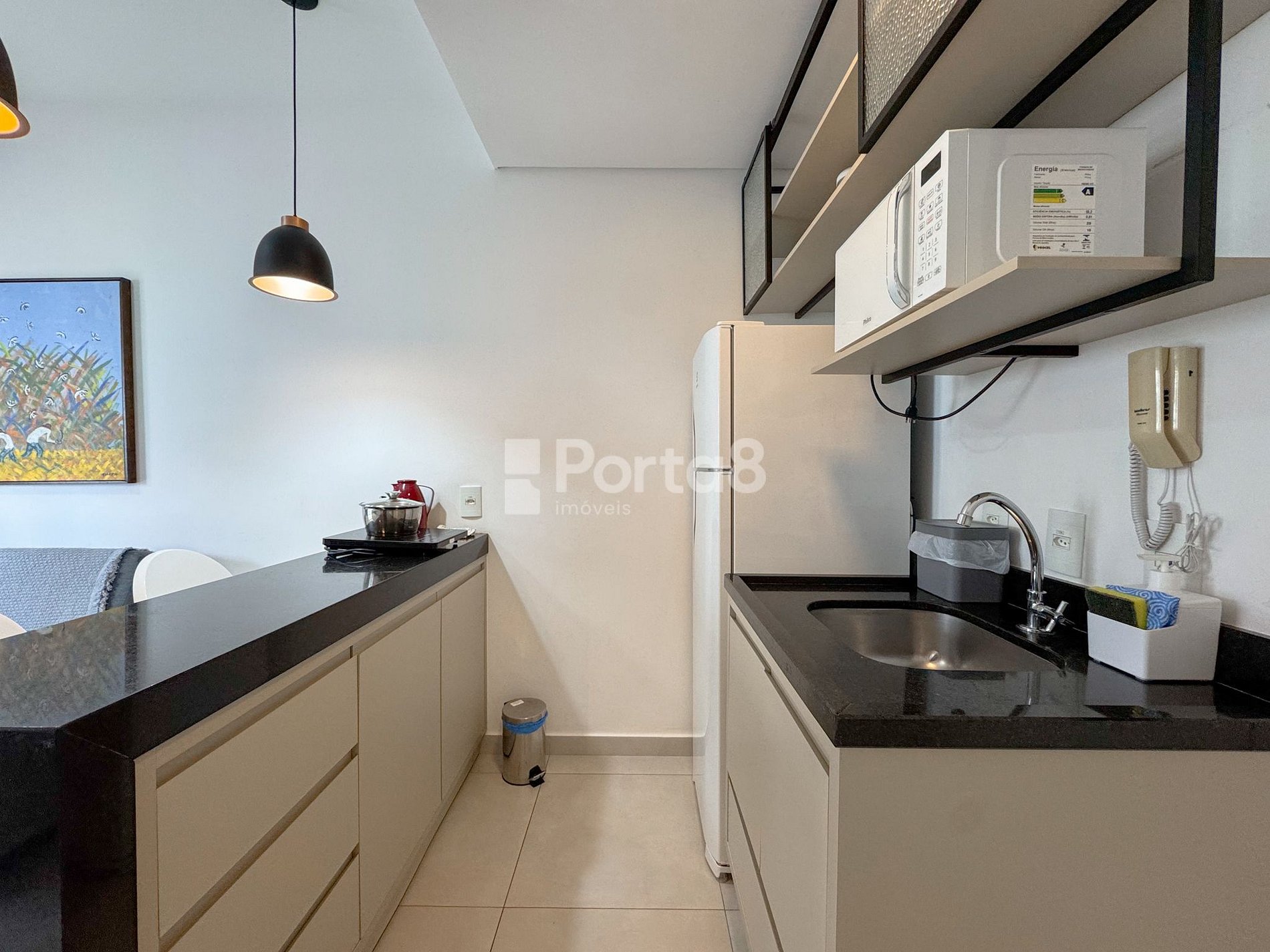 A cozinha compacta possui geladeira e micro-ondas para guardar suas refeições e aquece-las a seu gosto. Tem garrafa térmica e coador para o preparo do café de todo dia! Tem pratos, talheres, copos, taças, facas, tábua e potes de plástico. Na cozinha ainda tem uma chaleira e fogão de indução de 1 boca juntamente com as panelas para você preparar uma refeição a seu gosto.