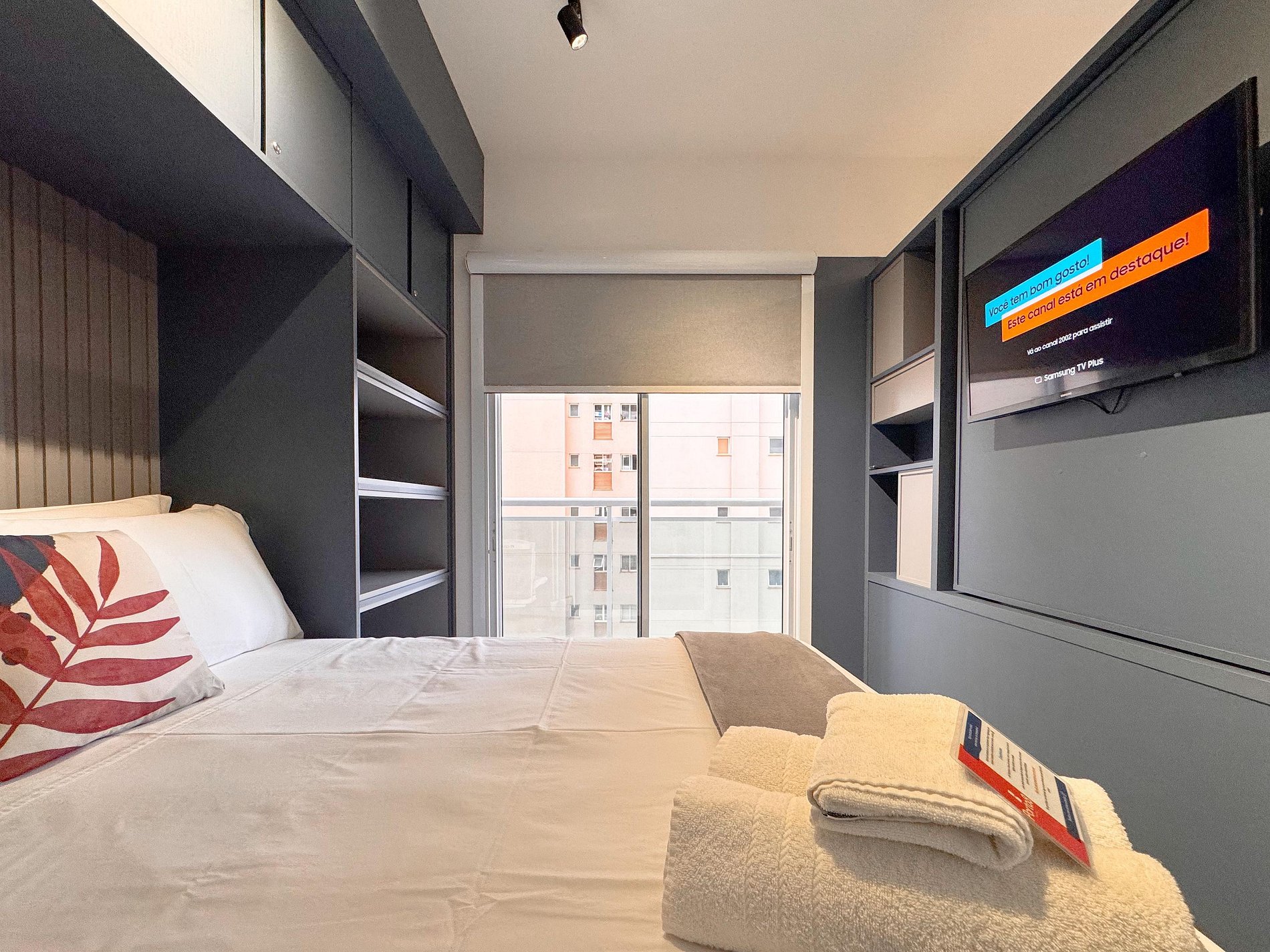 Os apartamentos são modernos, confortáveis e bem equipados, com ar condicionado, cozinha compacta e vista para a cidade. Os moradores têm à disposição estacionamento particular Med Park no próprio condomínio.