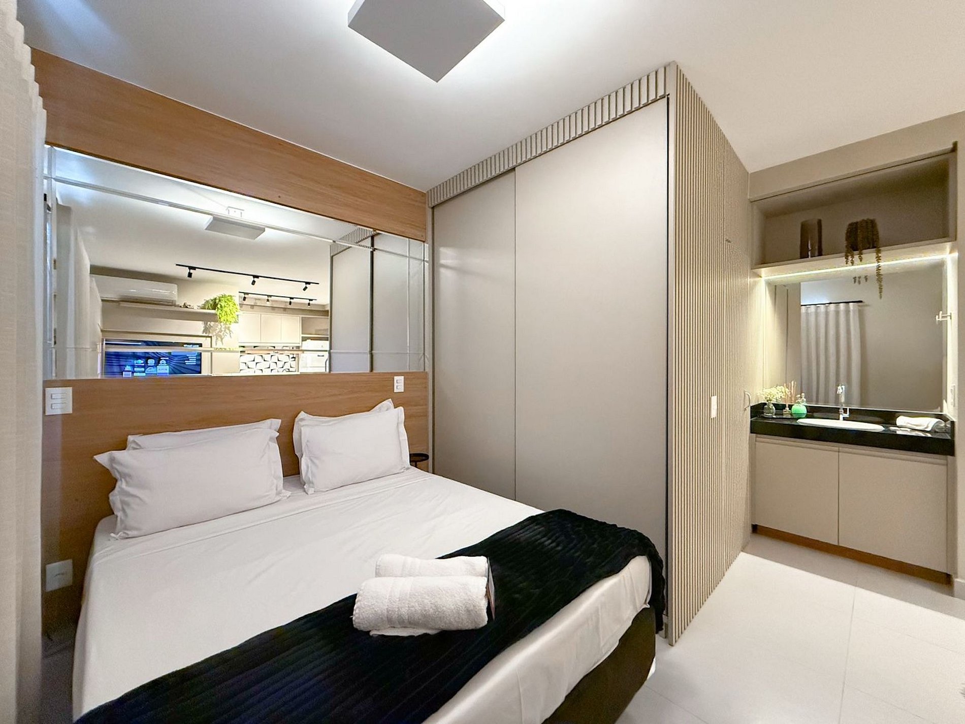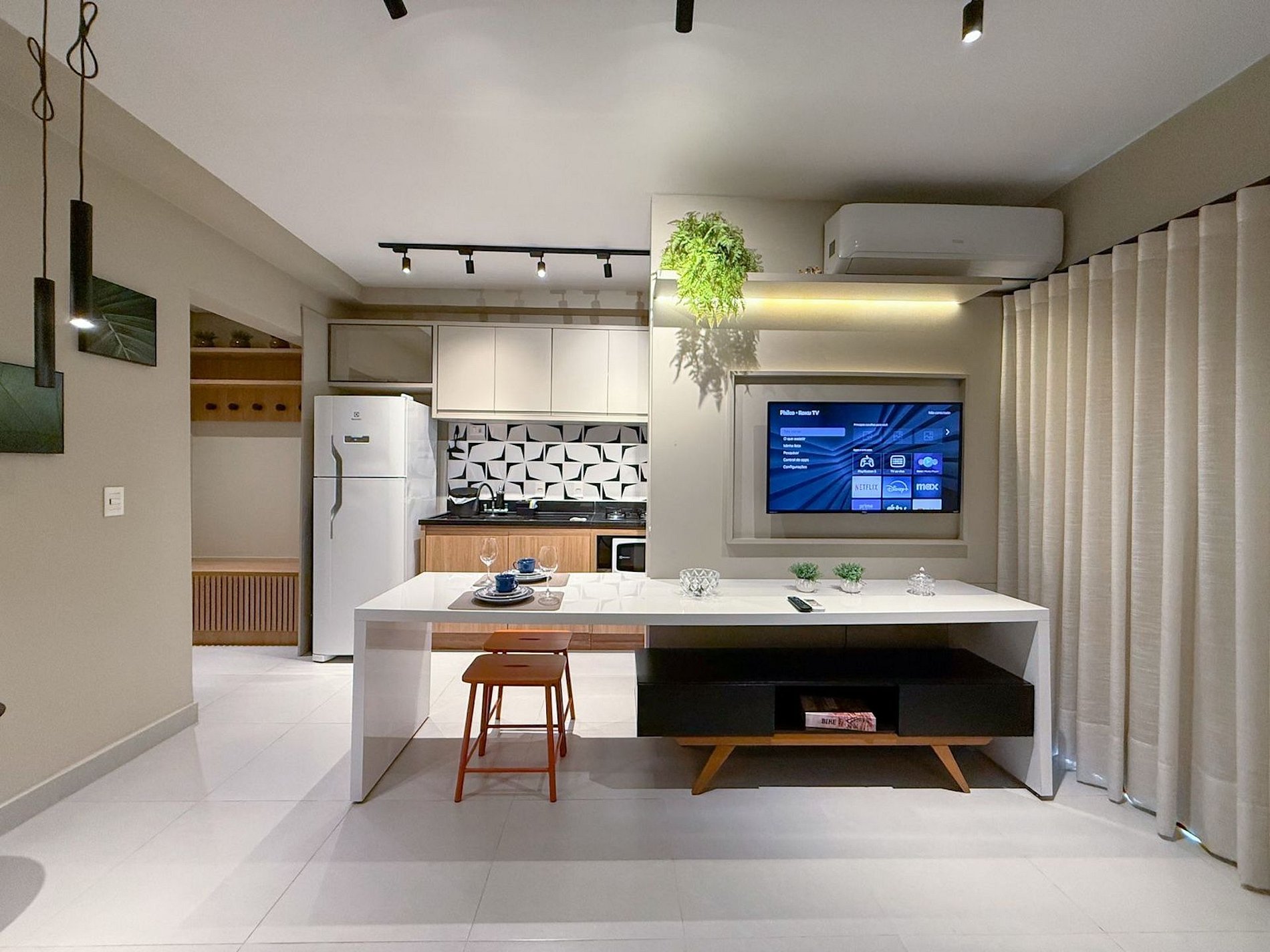 Estúdio elegante no Unique, com decoração moderna e projeto com acabamento diferenciado pensado para conforto e funcionalidade. Possui sacada fechada com churrasqueira, cozinha completa, sofá-cama, Smart TV, ar-condicionado e cama queen. Ahh e com uma vista privilegiada para a cidade. Ideal para quem busca praticidade, estilo e um ambiente acolhedor para viver momentos especiais. Vem se sentir em casa!