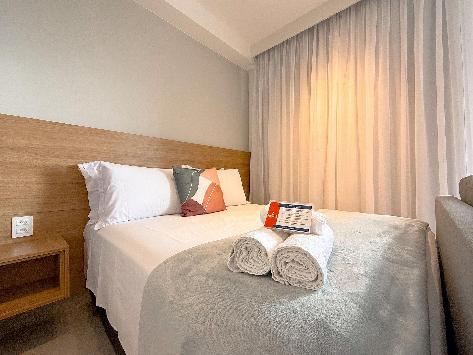 E para facilitar ainda mais, o check-in é moleza! No dia da sua chegada, você vai receber um e-mail com a autorização de acesso para entrar no condomínio e uma senha para abrir a porta do seu apartamento, sem precisar ficar carregando chaves por aí.