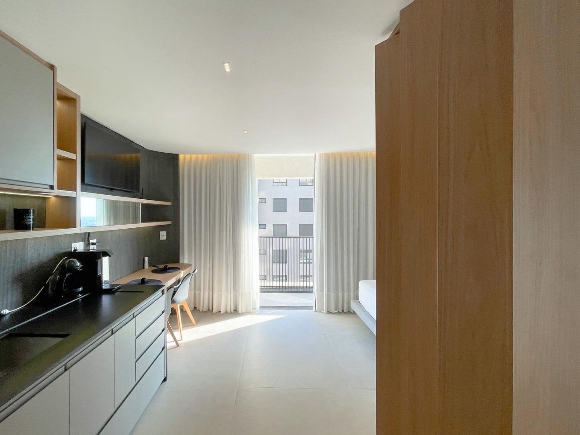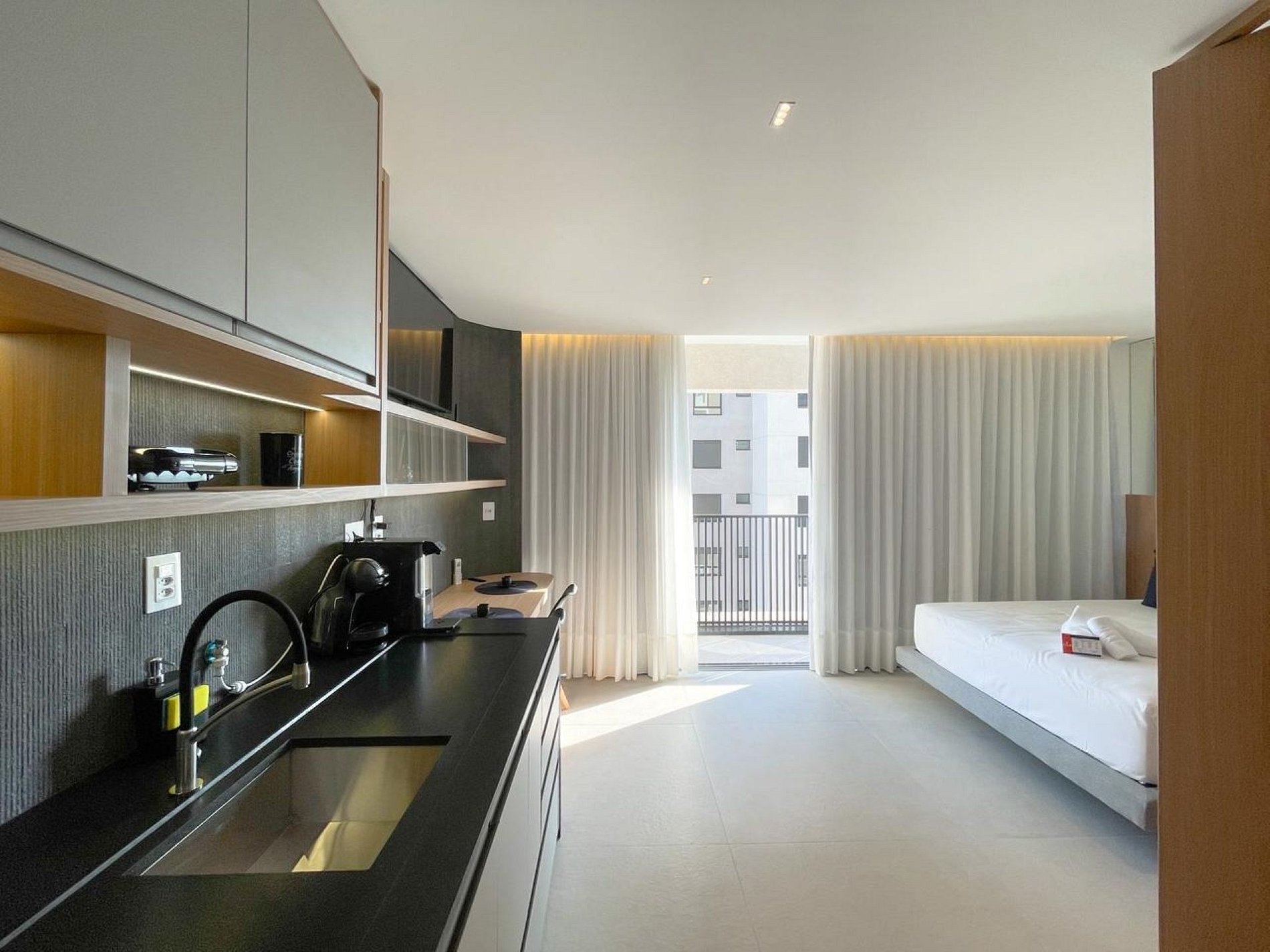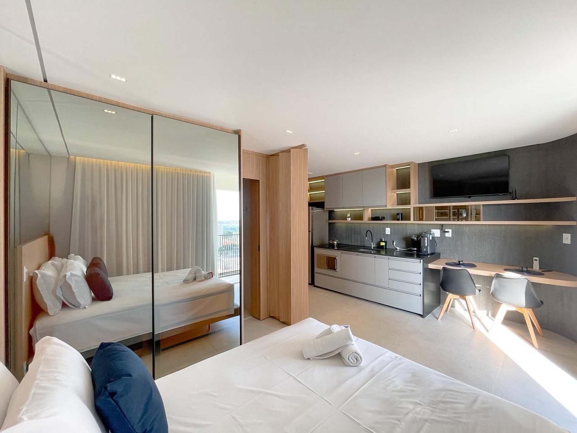 Este estúdio no Hype 017 é a definição de hospedagem inteligente com padrão elevado. Cada detalhe foi pensado para unir design contemporâneo, conforto absoluto e funcionalidade real, ideal tanto para estadias curtas quanto longas.