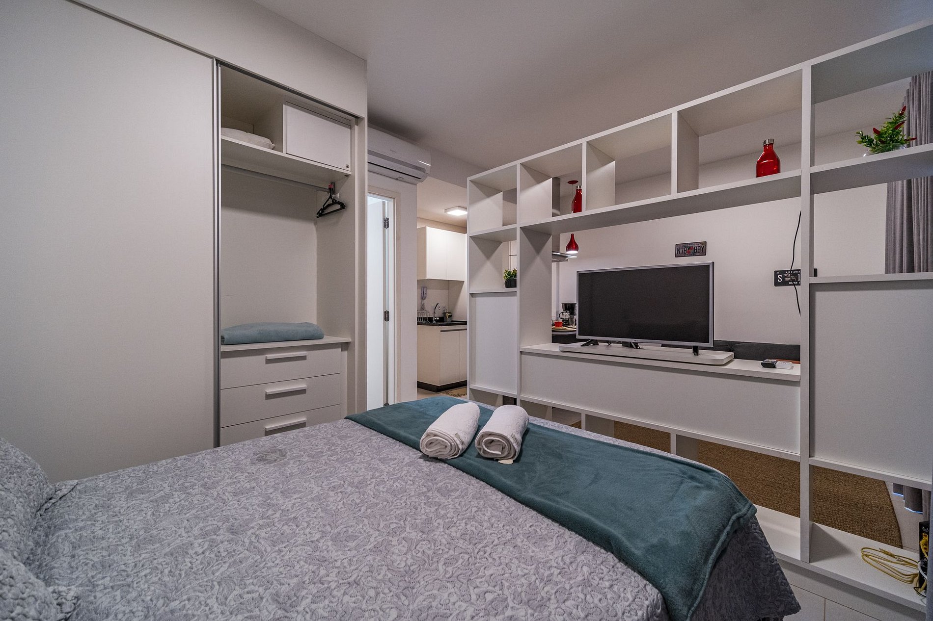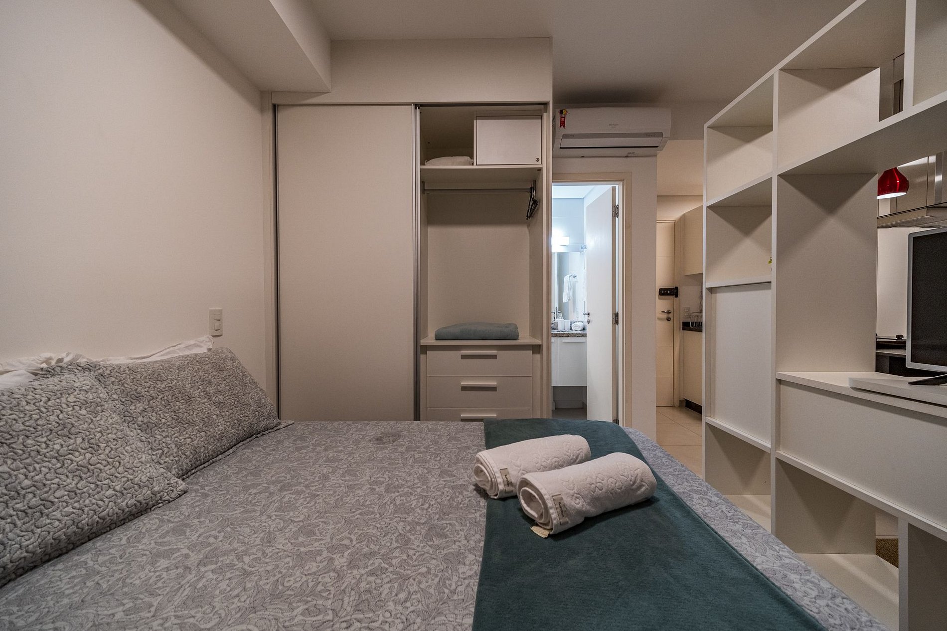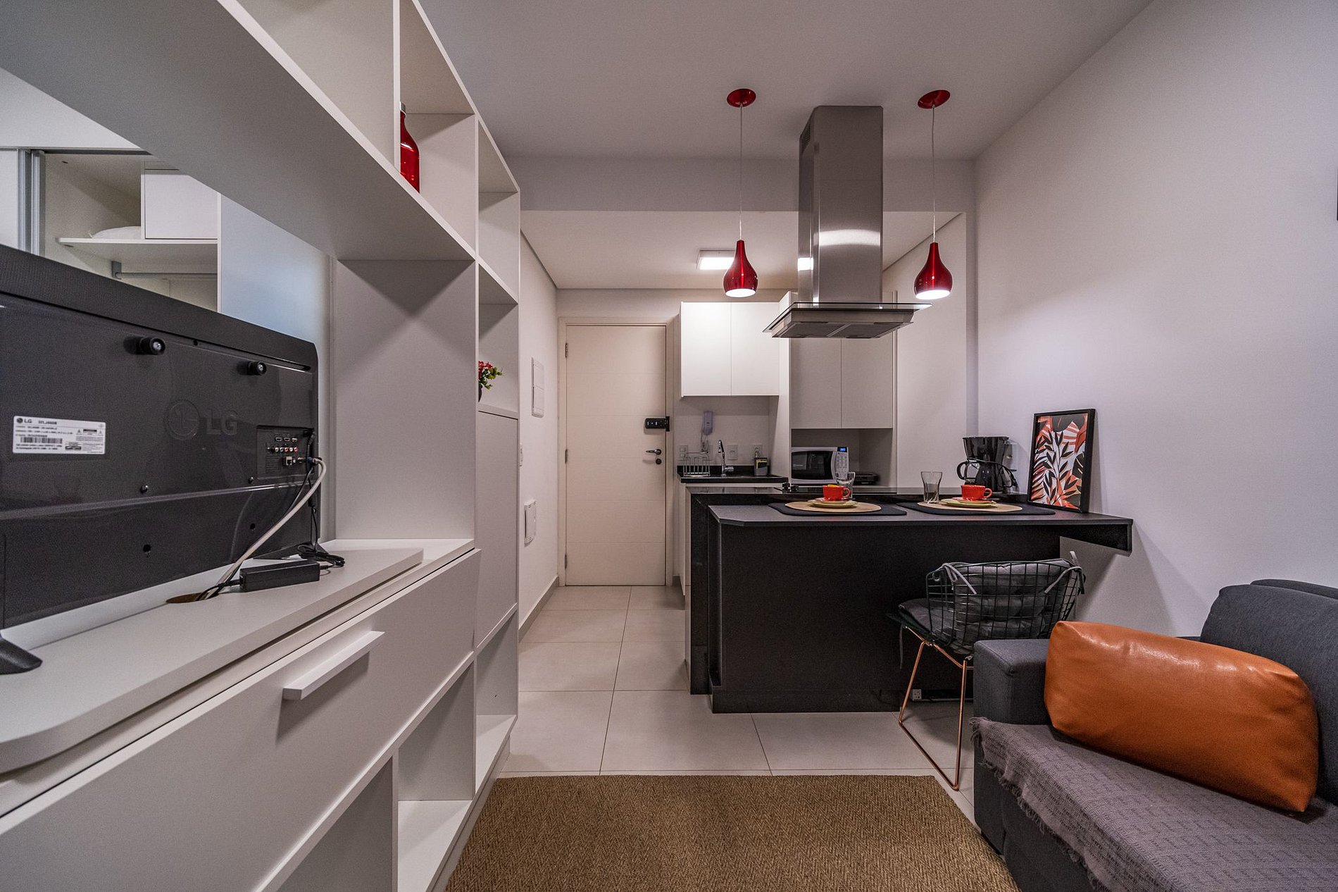 Os apartamentos são modernos, confortáveis e bem equipados, com ar condicionado, cozinha compacta e vista para a cidade. Os moradores têm à disposição estacionamento particular Med Park no próprio condomínio.
