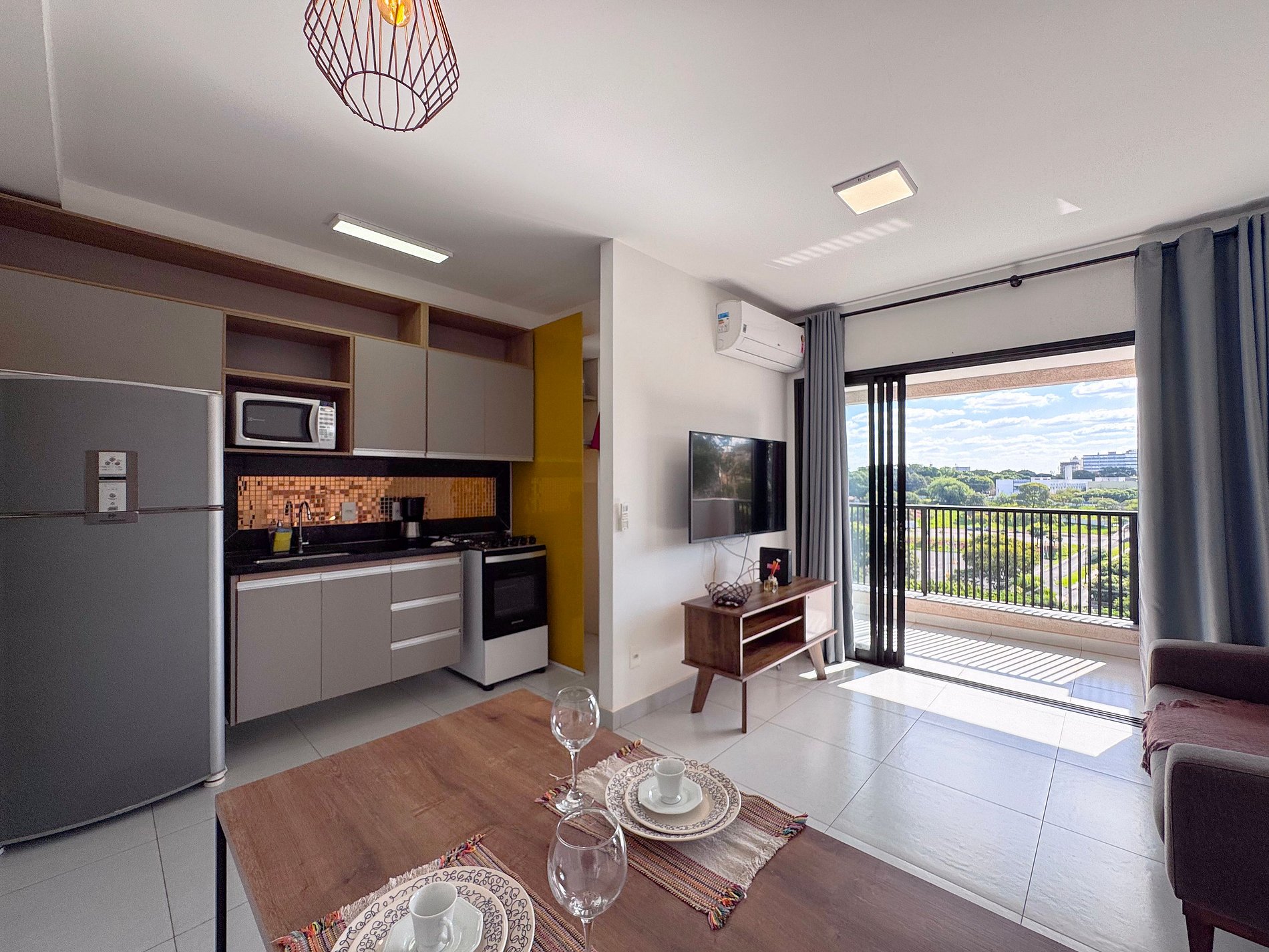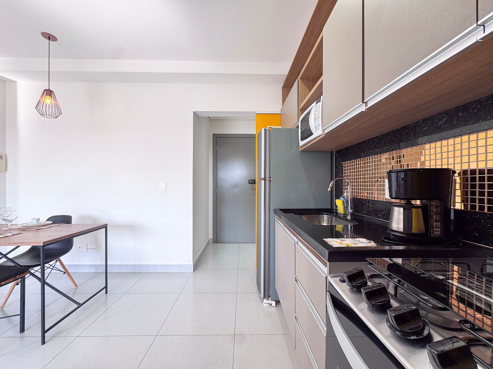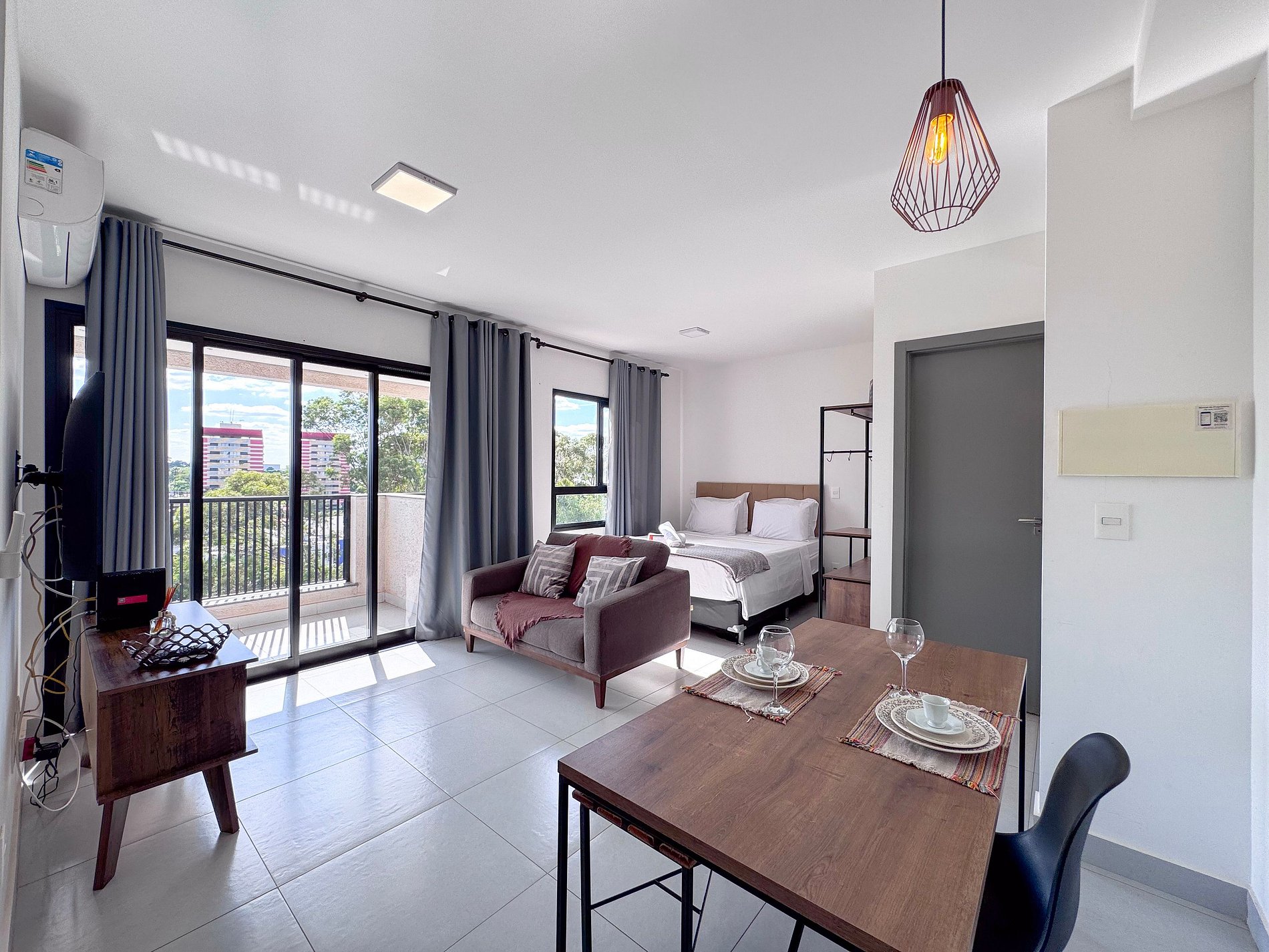 Apto localizado em região top da cidade! O espaço é muito charmoso e foi preparado com carinho para seu conforto e bem-estar. Cama queen com enxoval cama e banho completo. Cozinha equipada com fogão, micro-ondas, sanduicheira e todos os itens que precisa para preparar a sua melhor refeição! Vem se sentir em casa!