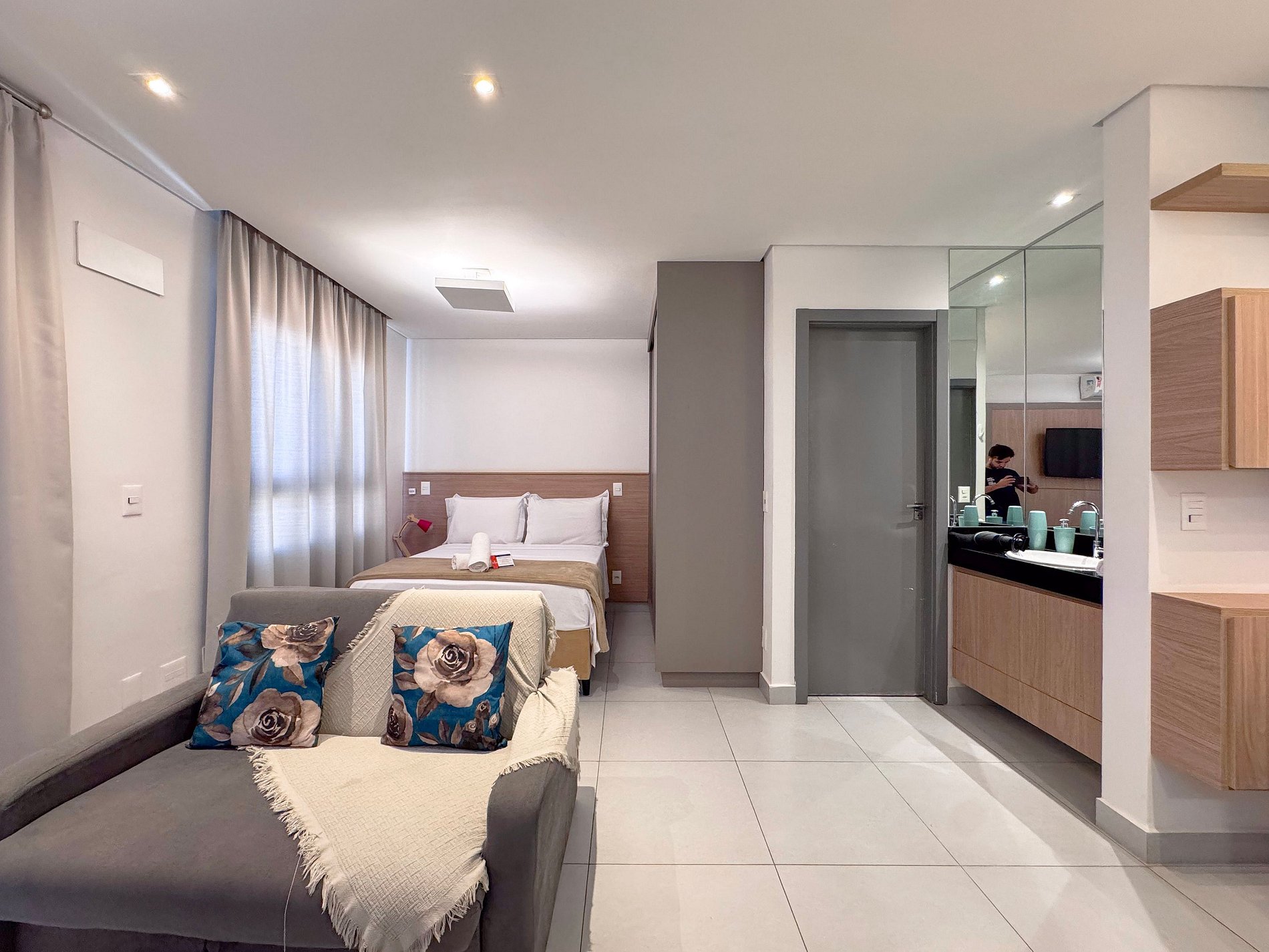 E para facilitar ainda mais, o check-in é moleza! No dia da sua chegada, você vai baixar o app PORTER e cadastrar sua facial para entrar no condomínio e irá receber uma senha para abrir a porta do seu apartamento, sem precisar ficar carregando chaves por aí.