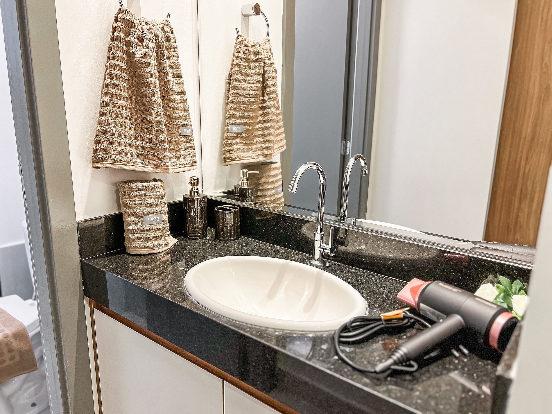 E para facilitar ainda mais, o check-in é moleza! No dia da sua chegada, você vai baixar o app PORTER e cadastrar sua facial para entrar no condomínio e irá receber uma senha para abrir a porta do seu apartamento, sem precisar ficar carregando chaves por aí.
