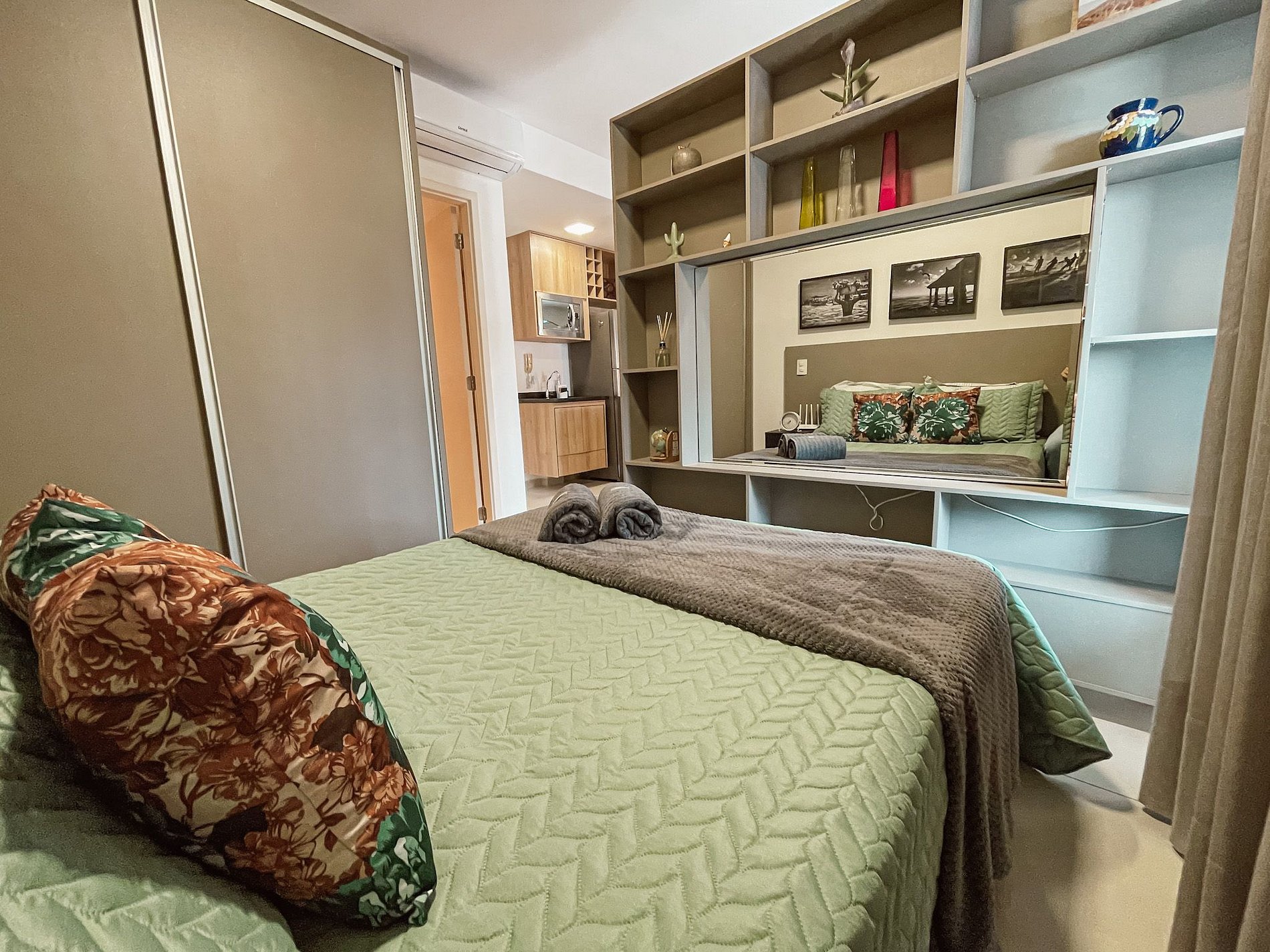 Os apartamentos são modernos, confortáveis e bem equipados, com ar condicionado, cozinha compacta e vista para a cidade. Os moradores têm à disposição estacionamento particular Med Park no próprio condomínio.