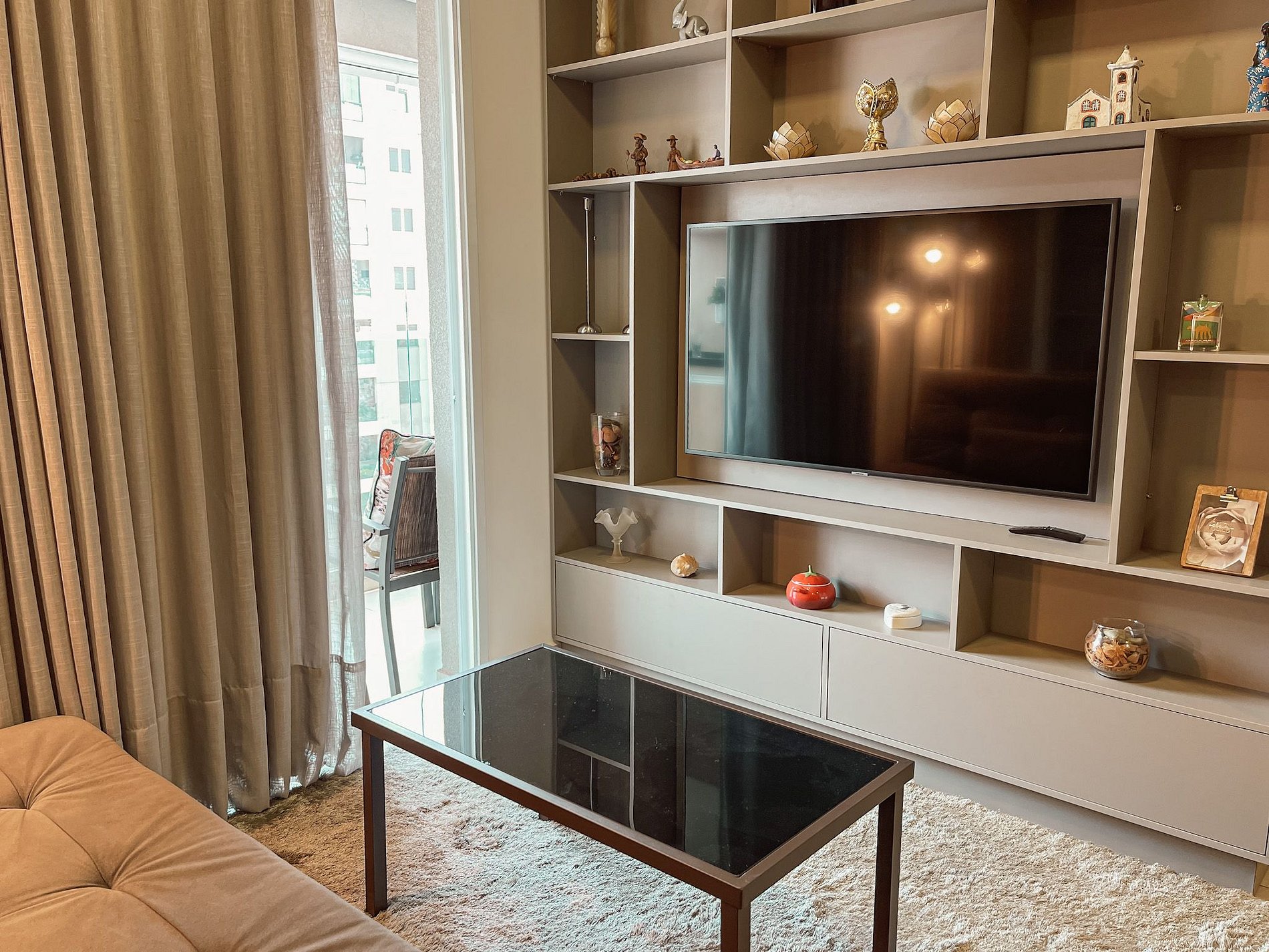 Espaço bem decorado, com elegância, sutileza e modernidade! Cozinha bem equipada com eletro em inox, cafeteira cápsula Dolce Gusto! Sala com decoração única, sofá cama confortável e espaçoso e iluminação aconchegante. Quarto com cama confortável e enxoval completo. Smart TV que pode ser utilizada na sala ou quarto. Varanda fechada em vidro, climatizada e com espaço para apreciar a vista tomando sua bebida favorita! Venha se hospedar e desfrutar de um espaço único e moderno!