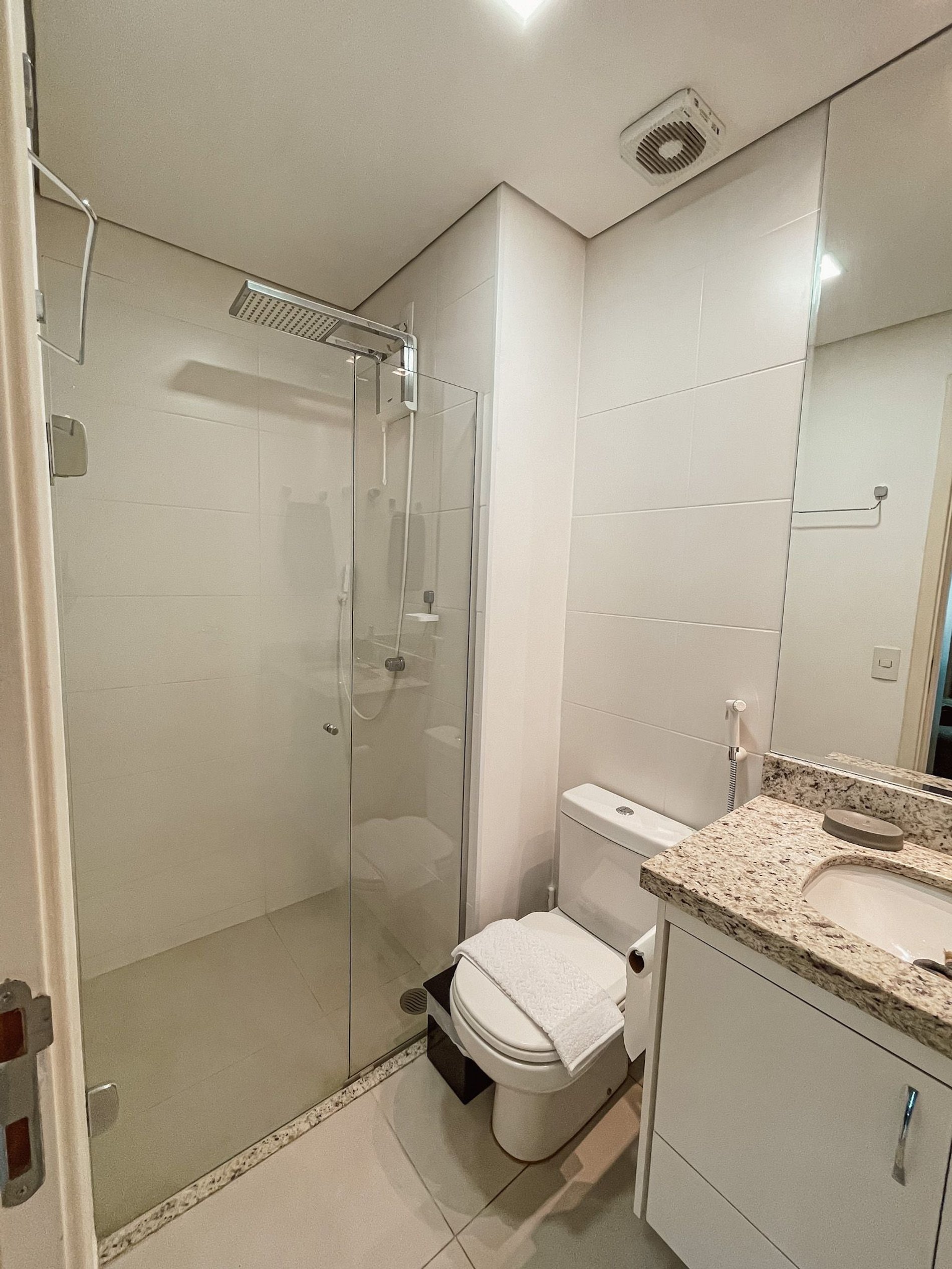 Banheiro com ducha quente e forte e enxoval de banho completo e tudo novo e de qualidade!