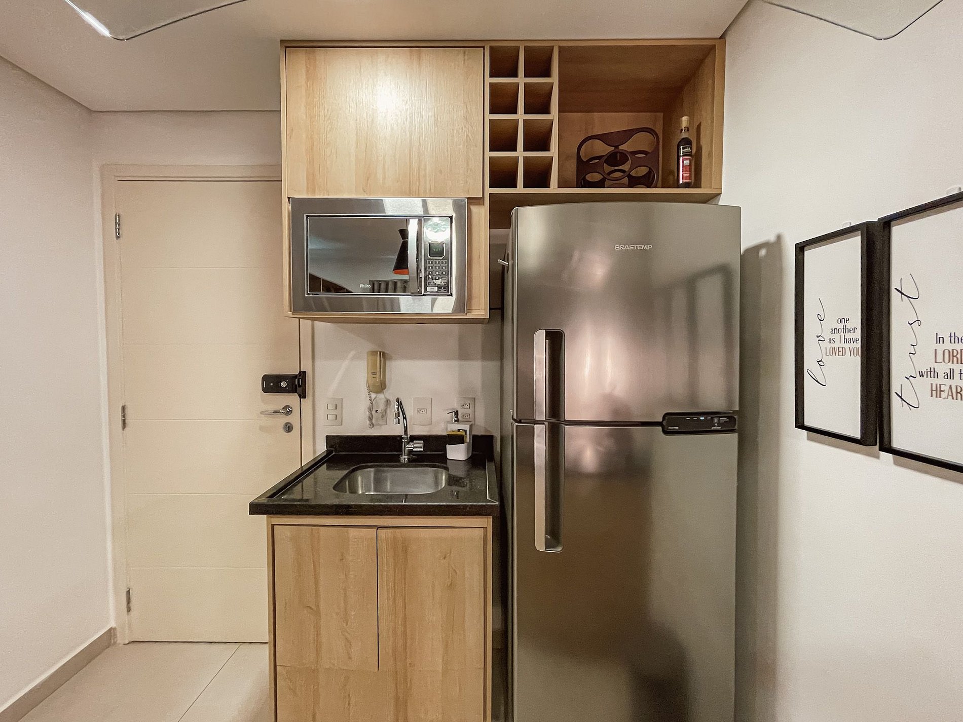 E para facilitar ainda mais, o check-in é moleza! No dia da sua chegada, você vai receber um convite de acesso para entrar no condomínio e uma senha para abrir a porta do seu estudio, sem precisar ficar carregando chaves por aí.