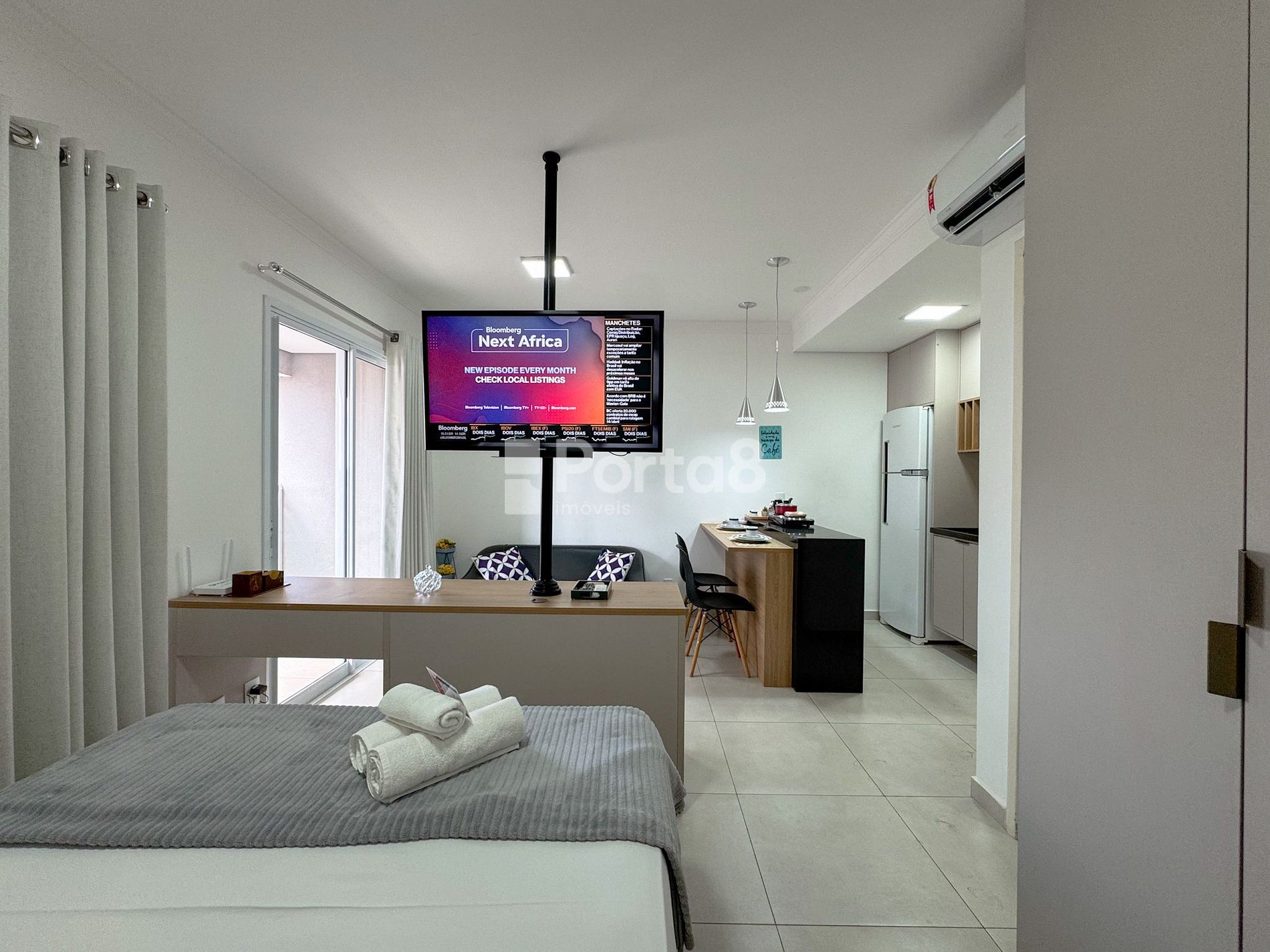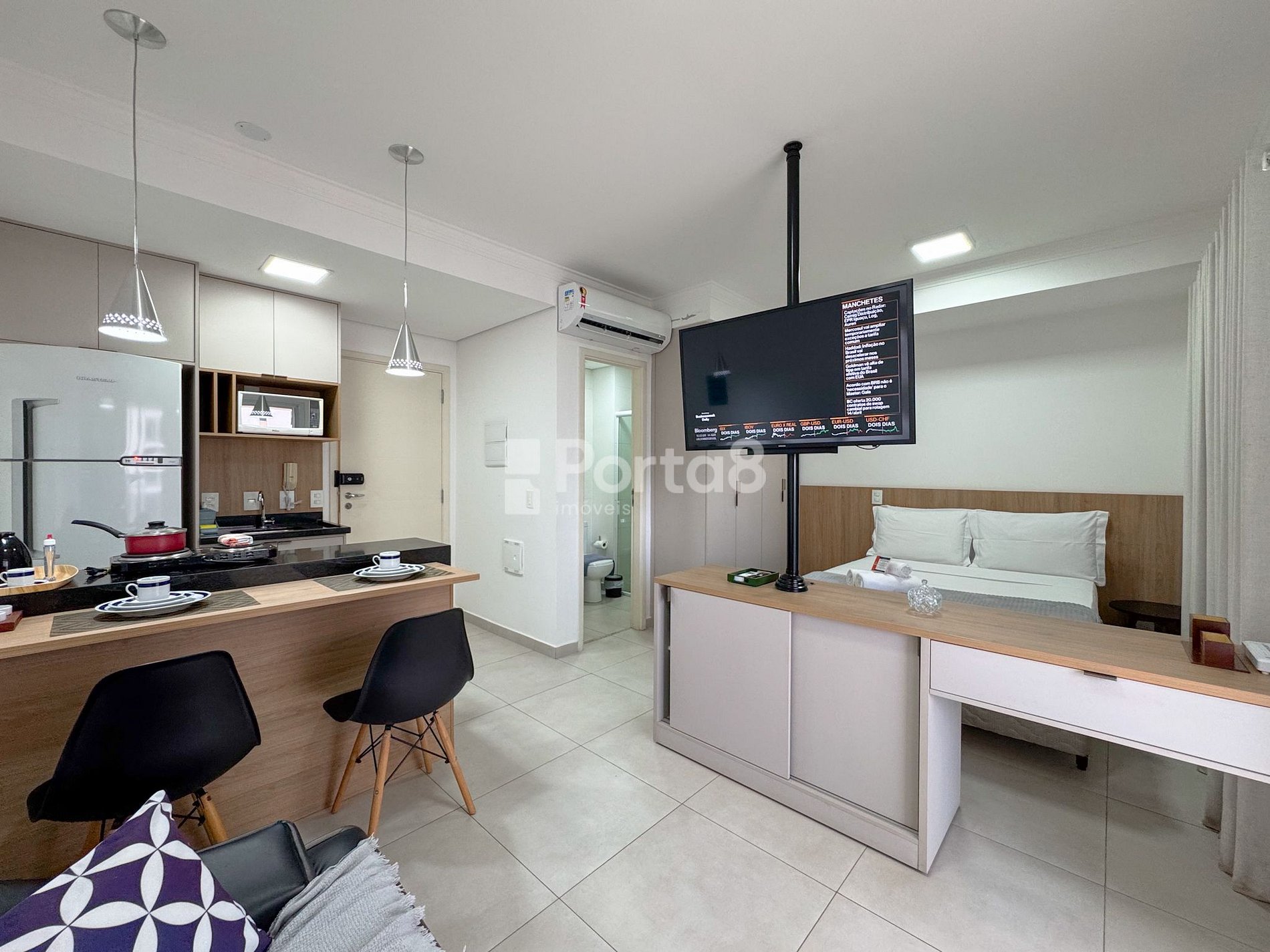 Os apartamentos são modernos, confortáveis e bem equipados, com ar condicionado, cozinha compacta e vista para a cidade. Os moradores têm à disposição estacionamento particular Med Park no próprio condomínio.